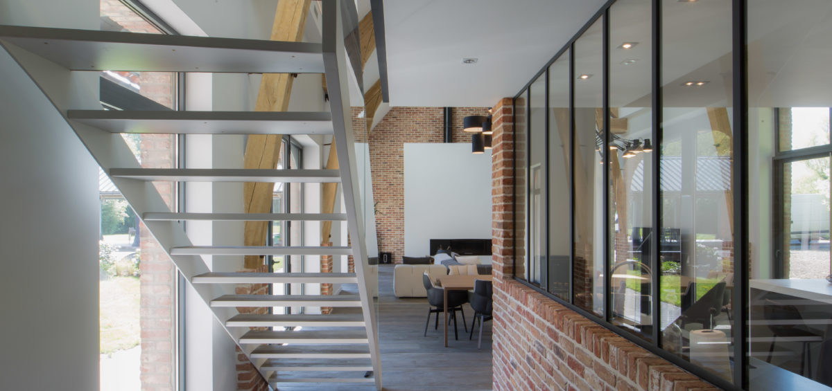 Cloison en verre type Atelier d’artiste avec verres transparents fixés dans uns structure métallique thermolaquée noire. Chantier par Amiot architecture – Photo de Denis Paillard  Read more