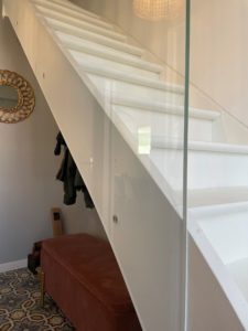 Garde corps en verre Extra clair trempé 10 mm avec fixations laquées en blanc