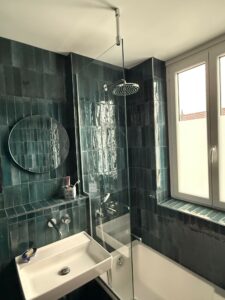 Paroi fixe en verre trempé avec barre raidisseur et profil alu « U »