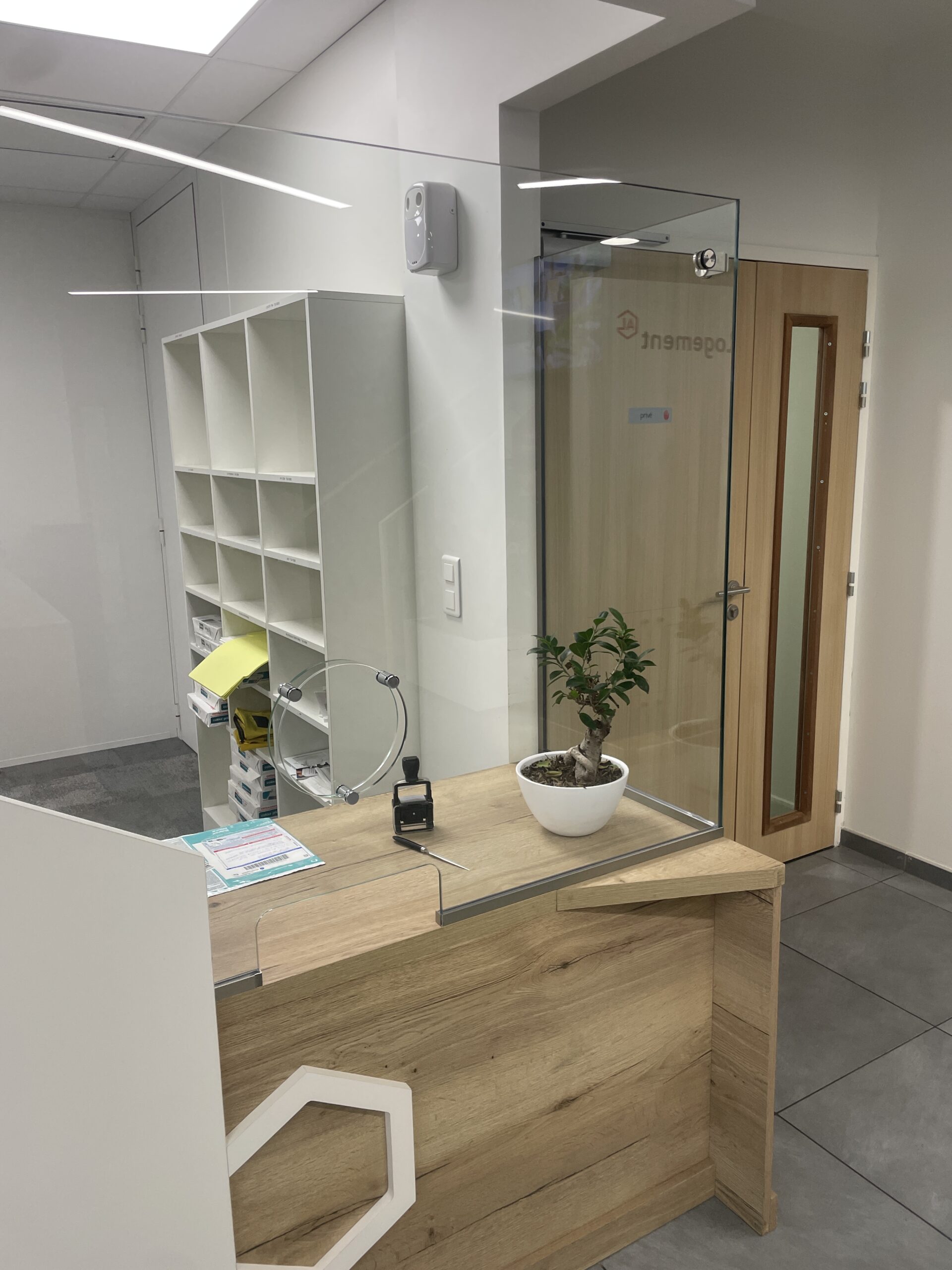 La cloison de protection en verre ou séparative permet de garder la transparence tout en se protégeant.