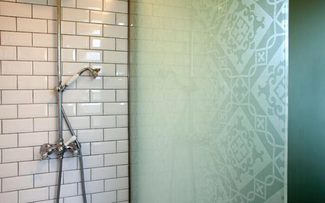 Il peut être percé pour les robinets ou la douche et sera trempé pour garantir sa résistance. On pourra intégrer des parties miroir dans le décor et il sera posé comme du carrelage.